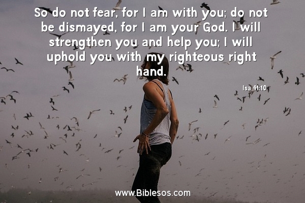 Isaiah 41:10, God says to fear not, for I am with you; be not dismayed, for I am your God; I will strengthen you, I will help you, I will uphold you with my righteous right hand.